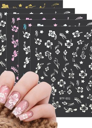 White Pink Golden Clear Silver Flower Nail Sticker Decals 10 Sheets Nail Art Decorations Nail Decals Nail Art Supplies s for Women Manicure Tips
